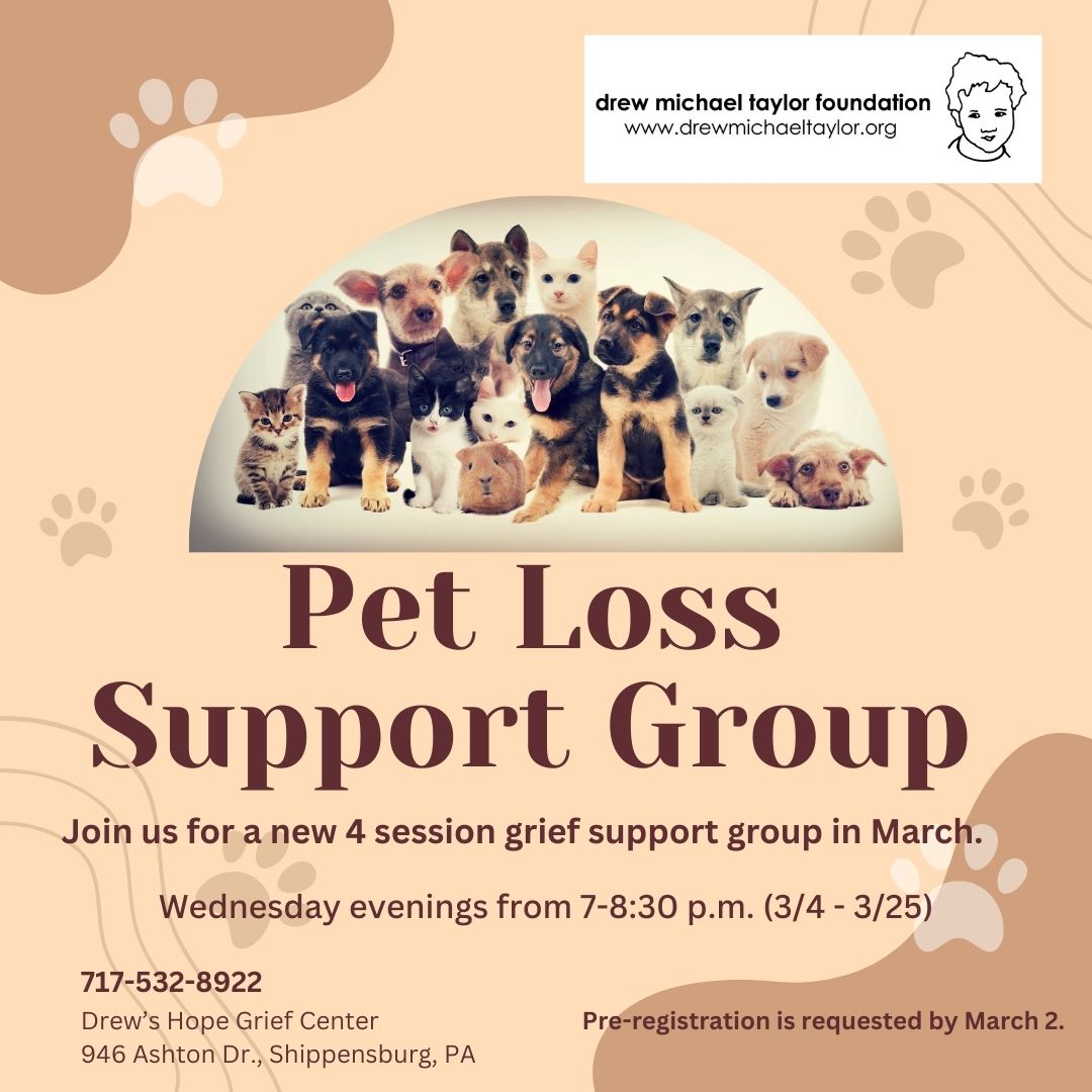 The newest support group for adult grievers is our 4 session Pet Loss Support Group....